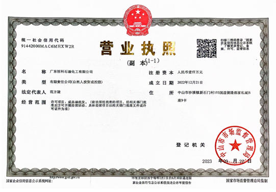 广东恒科石油化工有限公司(统一社会信用代码:91442000MAC6MHXW2R)成立于2022年12月21日,注册资本1000万元,是一家集成品油批发、零售、油库仓储、物流运输等服务于一体的综合性能源企业。