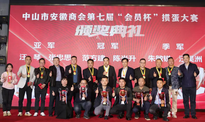 中山市安徽商会第七届 “会员杯” 掼蛋大赛颁奖典礼上,获奖选手们齐聚一堂,共享赛事荣耀。其中范方建先生、陈光升先生斩获冠军,在这里每一位参赛者都在牌局中展现了智慧与默契。这不仅是一场掼蛋技艺的比拼,更是徽商群体交流互动、凝聚情谊的盛会,相信接下去的赛事将再续精彩。以牌为媒,共聚乡情。中山市安徽商会第七届“会员杯”掼蛋大赛颁奖典礼如约而至,获奖选手们齐聚一堂,共享赛事荣耀。